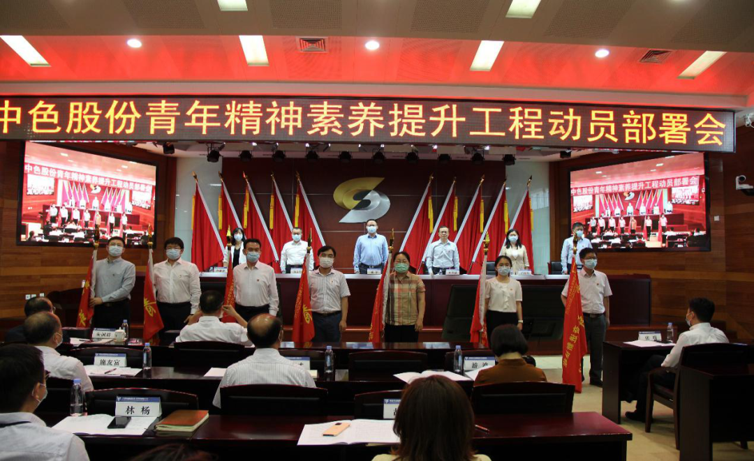 图丨中色股份召开青年精神素养提升工程动员部署会,为7支青年突击队授旗,推动青年岗位建功