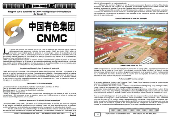 此次可持续发展报告发布活动以连载的形式进行,共有五期,涉及版面10个,分别从和谐劳资关系、维护和谐生态、关怀社会福祉、安全生产等方面对中国乐发集团进行全面报道,体现了集团公司坚守深化中刚友谊的初心和使命,与刚果(金)各方一起,在平等互利的基础上,共促高质量的矿业发展,形成“你中有我、我中有你”的发展共同体和命运共同体。